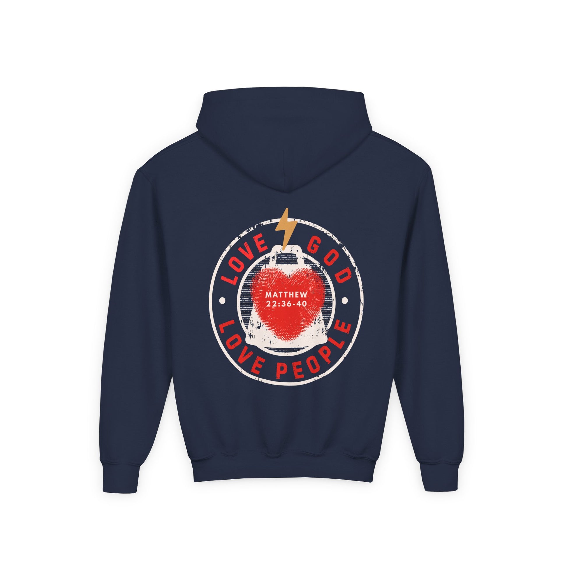 Youth Hoodie — "Love God, Love People" Christian Sweatshirt (Matthew 22:36-40)